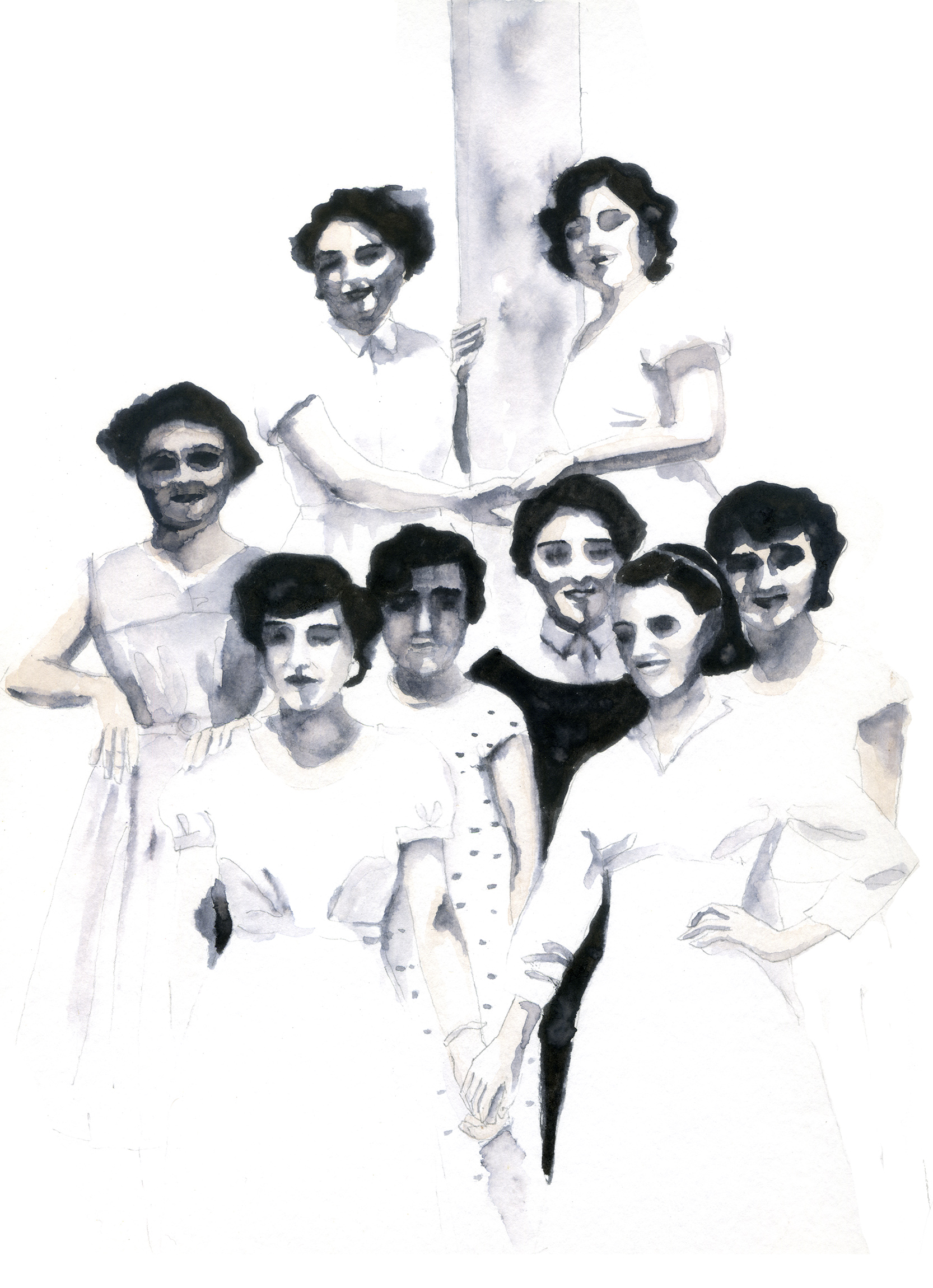 Ilustracións de grupos de mulleres coa intención de amosar os lazos de